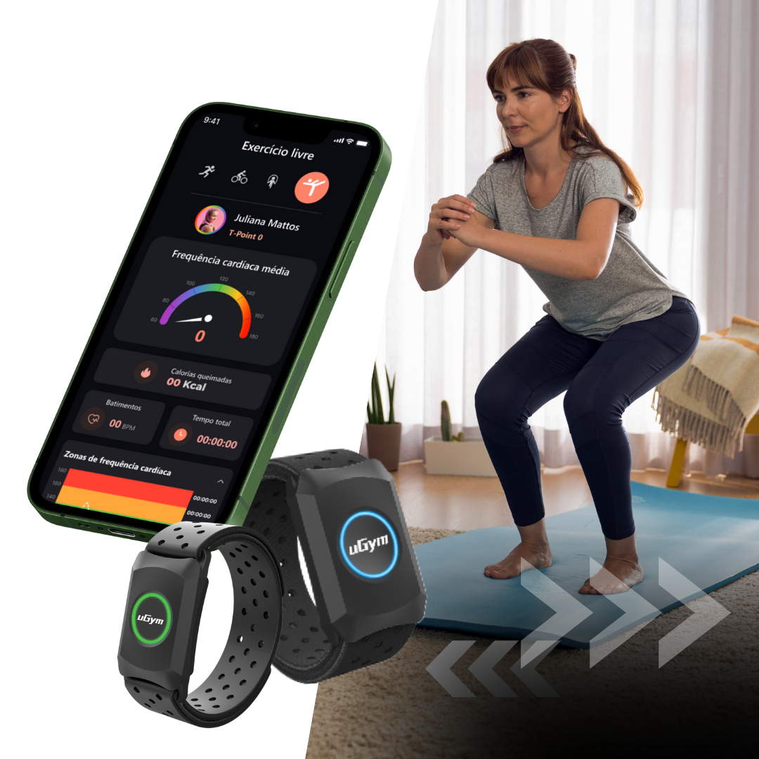 Conecte sua braçadeira de monitoramento cardíaco uGym ao app uGym FitHome e acompanhe suas atividades em casa.