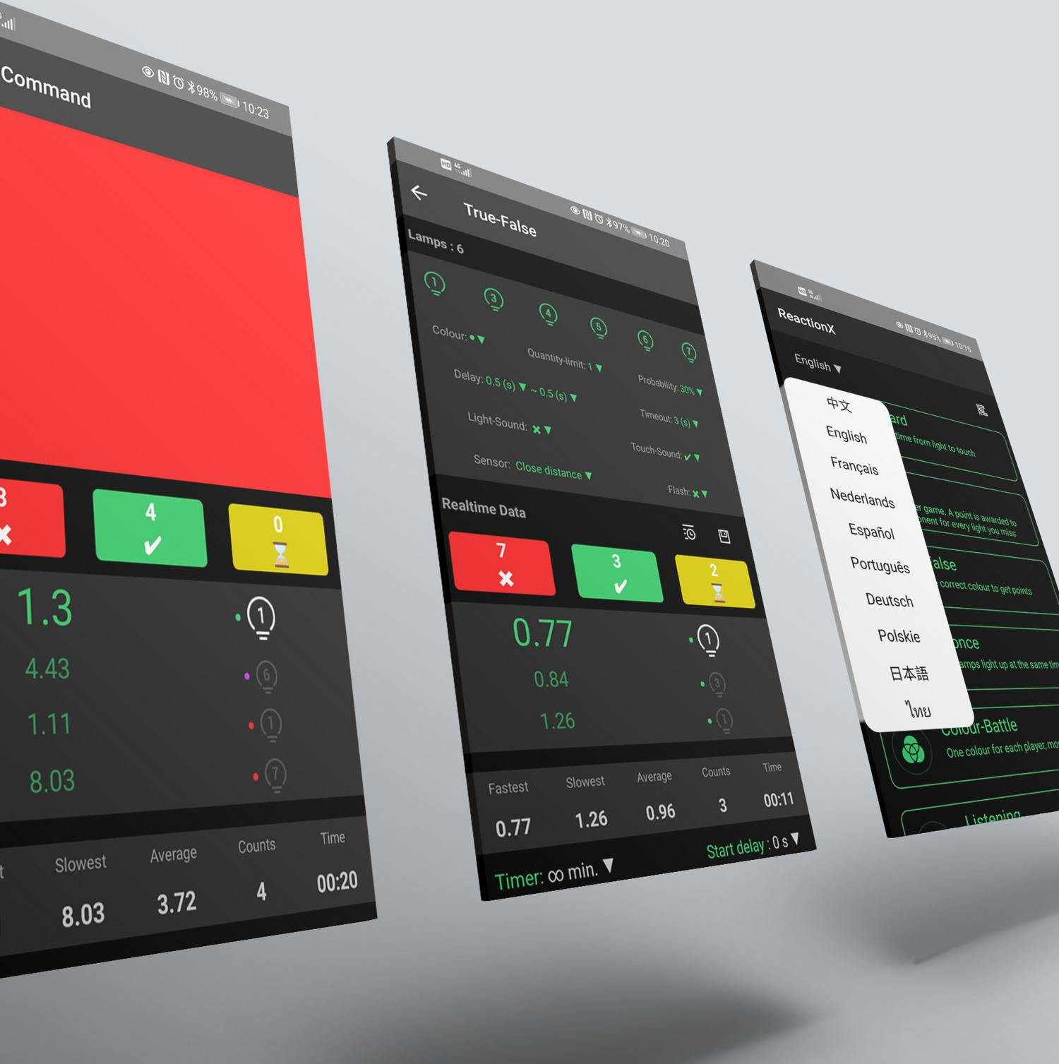 Mais de 10 modos de exercícios e desafios com diferentes parâmetros para definição por tempo, cor, alvos e muito mais.